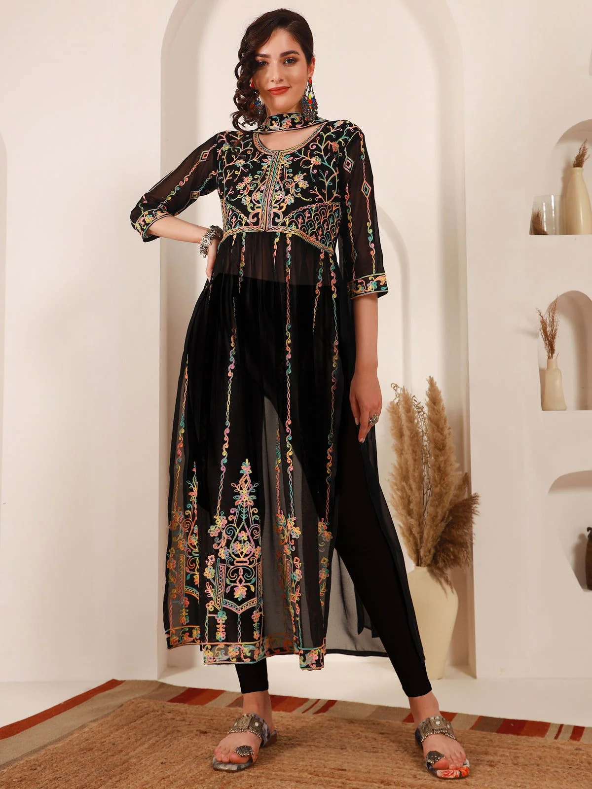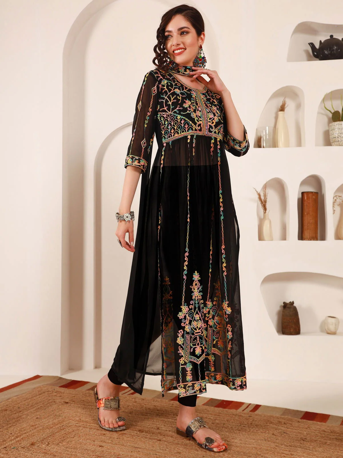 Georgette Embroidered and Sequence Work Naira Cut Kurta and Dupatta Set