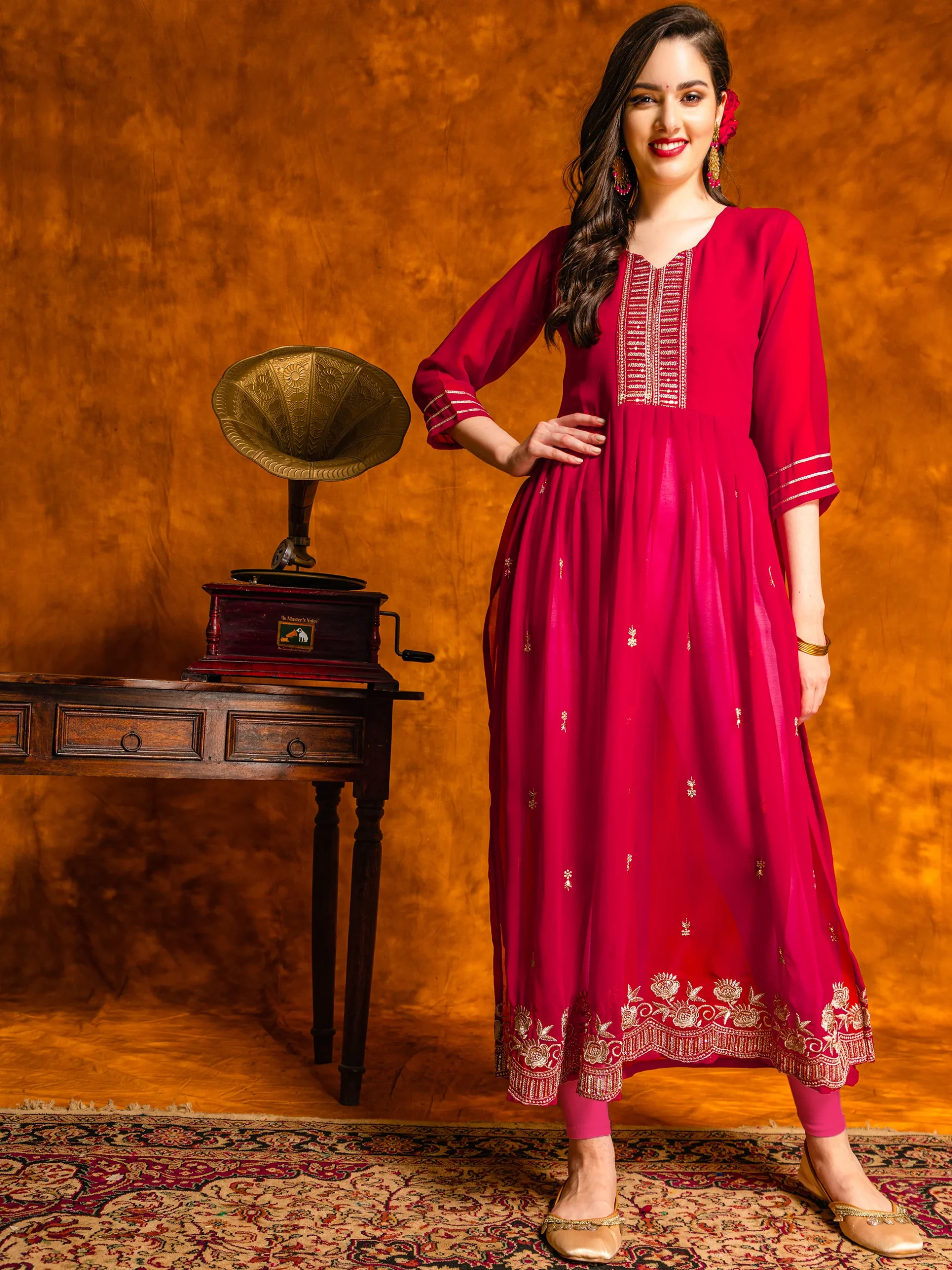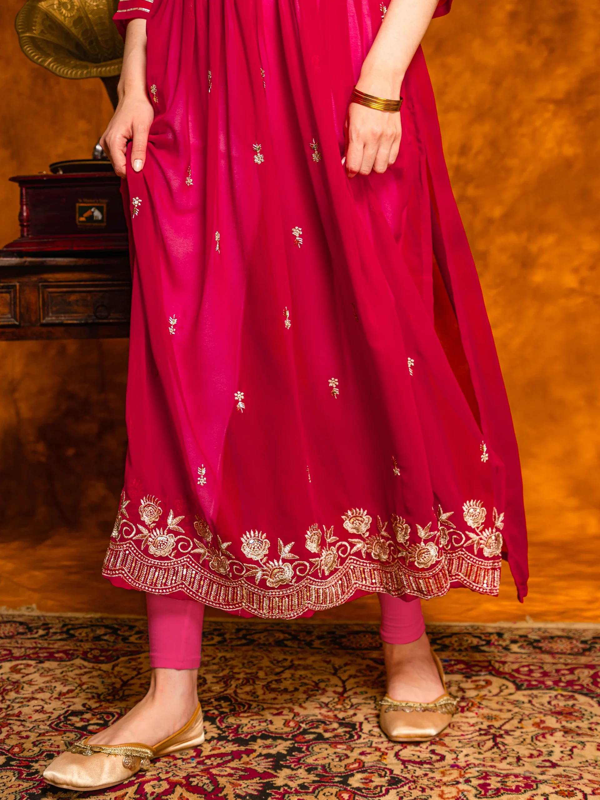 Georgette Embroidered Naira Cut Kurta