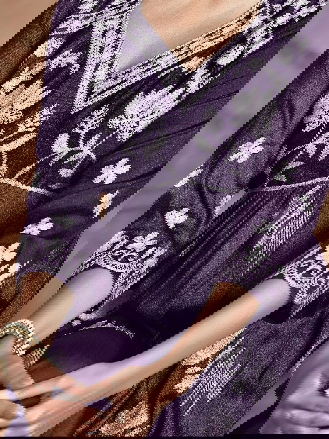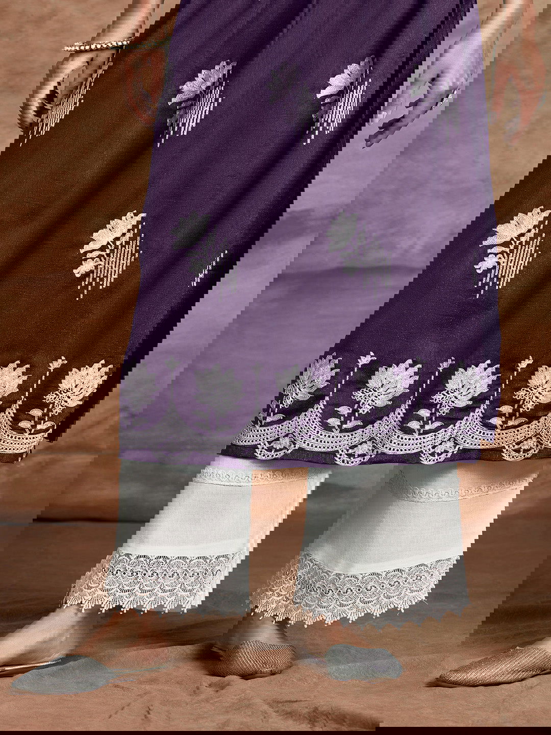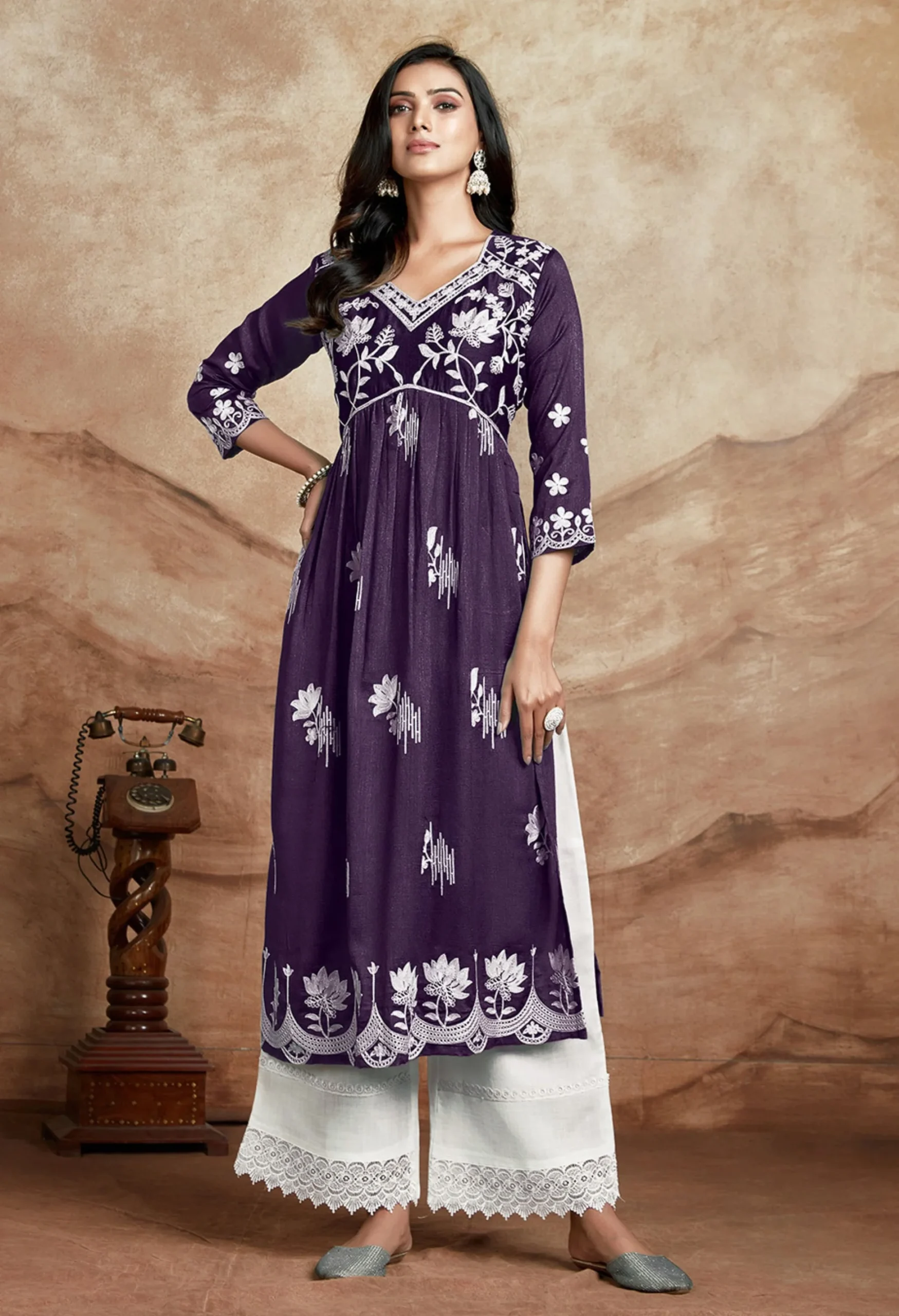 Vichitra Silk Chikankari Embroidered Naira Cut Kurta